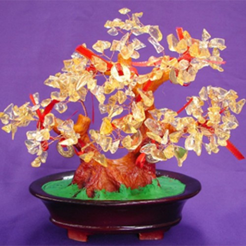 Citrine Gem Tree is the wealthy tree since citrine is the stone of wealth. Gem tree is also decorated with red ribbon and Chinese coin to